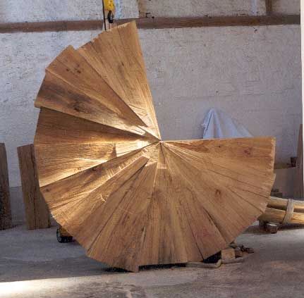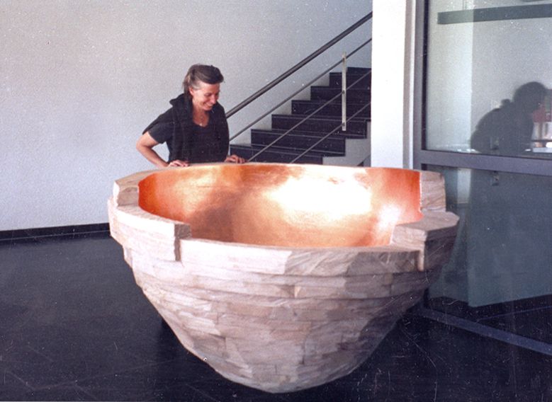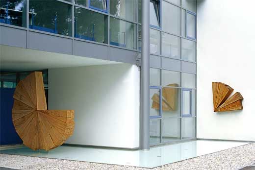 Von außen sichtbar sind Kunstobjekte aus Buchenholz. Das „große Ganze" findet sich im Stamm des Baumes. Zerlegt und verwandelt in eine neue Substanz bewirkt er die Heilwerdung. Die einzelnen Bereiche setzen sich aus vielen Details zusammen und bilden ein neues, gerundetes Ganzes.